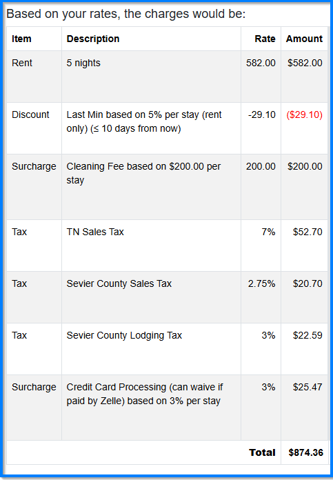If the guest had searched for Blue Mountain Cabins and booked directly through our website, the same stay would have been: