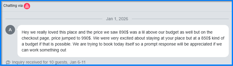 “We really loved this place. The price we saw was $890, but at checkout it jumped to $990. Our budget is closer to $850 - is there any way to make it work?”