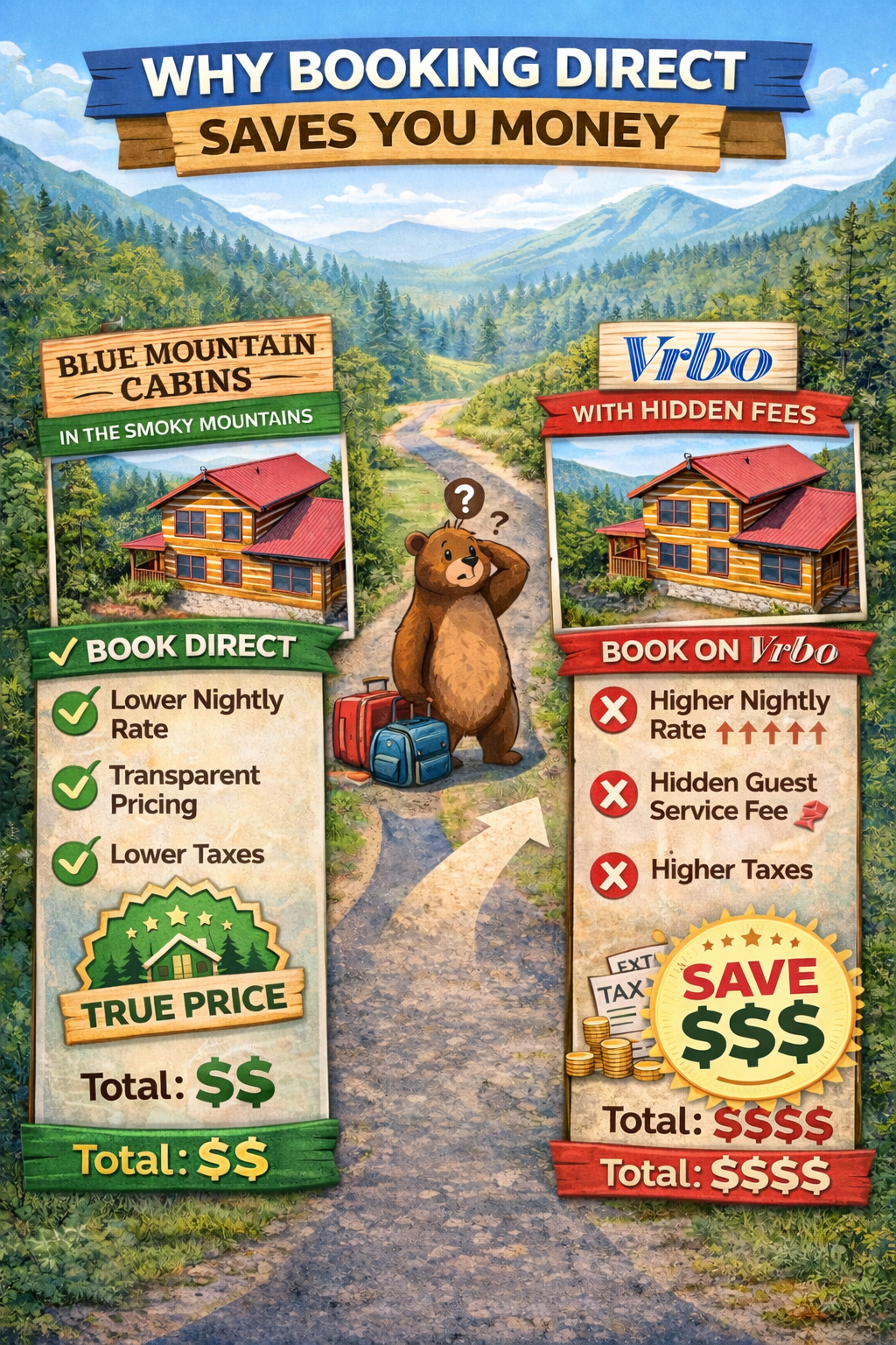 Here’s why booking directly with hosts like Blue Mountain Cabins in the Smoky Mountains is almost always less expensive.